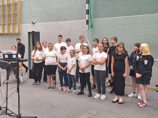 Bevor die Schülerinnen und Schüler ihre Zeugnisse erhielten, wurden sie mit einem tollen Programm von unserem Chor überrascht.