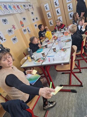 Unterricht mit einer Künstlerin und ein Besuch in ihrem Atelier. Es war toll und wir haben viel gelernt.