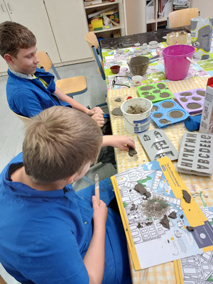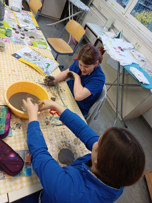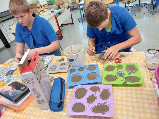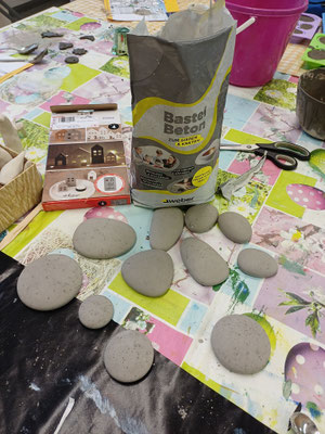 Im Technikunterricht probierten wir neues Material aus. Mit Bastelbeton gossen wir Steine, die nach dem Trocknen bemalt werden können. Auf das Ergebnis waren wir sehr gespannt. Es kann sich sehen lassen.